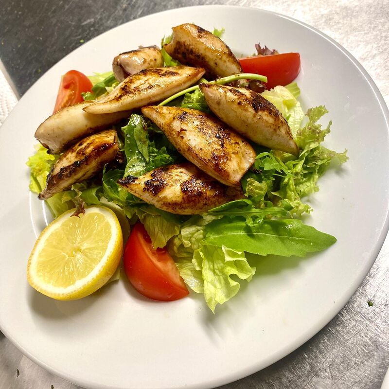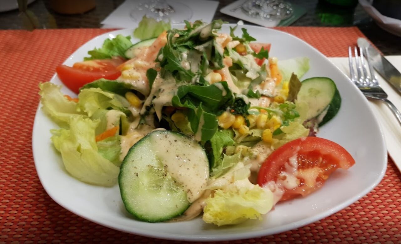 Ein kleiner Salat oder eine Suppe (ausgenommen Fischsuppe)